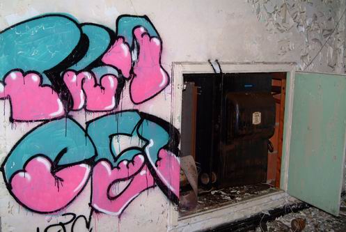 Pretty rad graffiti. And some electrical equipment in a tiny closet.