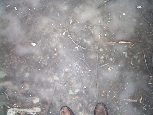 Cables frozen in ice on the floor. If all the ice is any indication, in summer there's a constant 2 inches of water on the floor.
