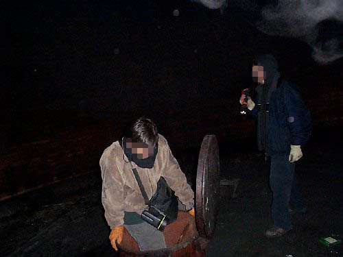 Mokonax clambering back down the ladder, after UEM had stood and enjoyed the echoes for a while. For an example of said echoes, check out the